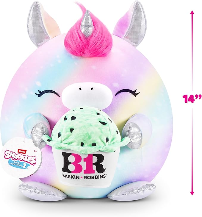 Snackles Series 2 14-inch by ZURU Cuddly Squishy Comfort 14-inch Plush with Licensed Snack Brand Accessory (Unicorn&Baskin-Robbins