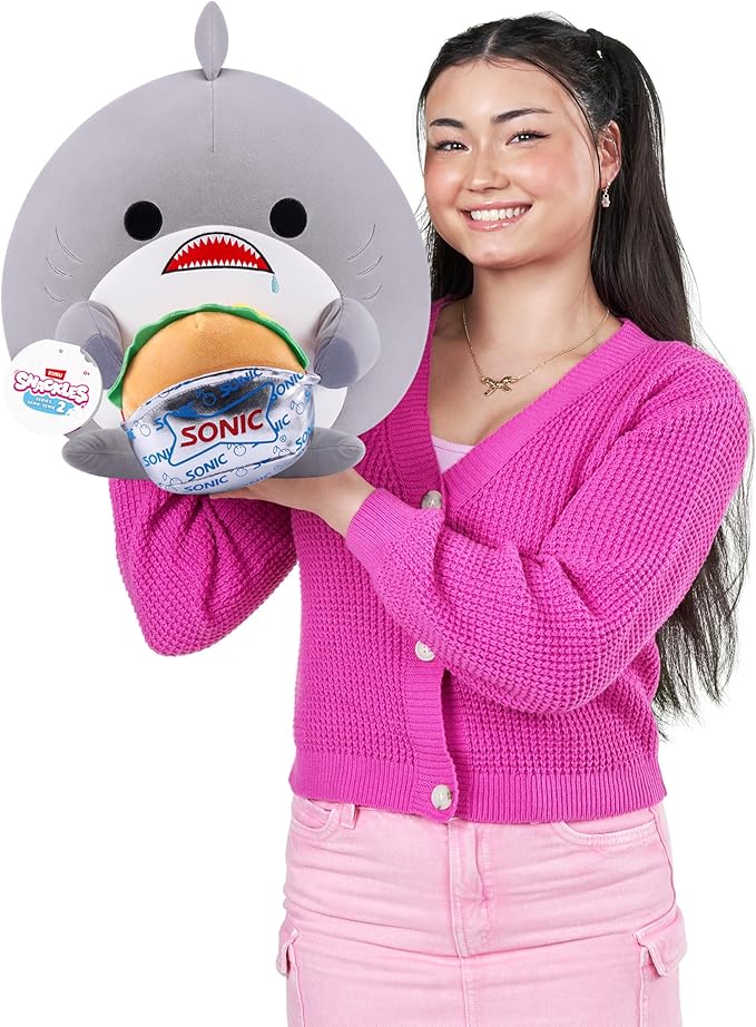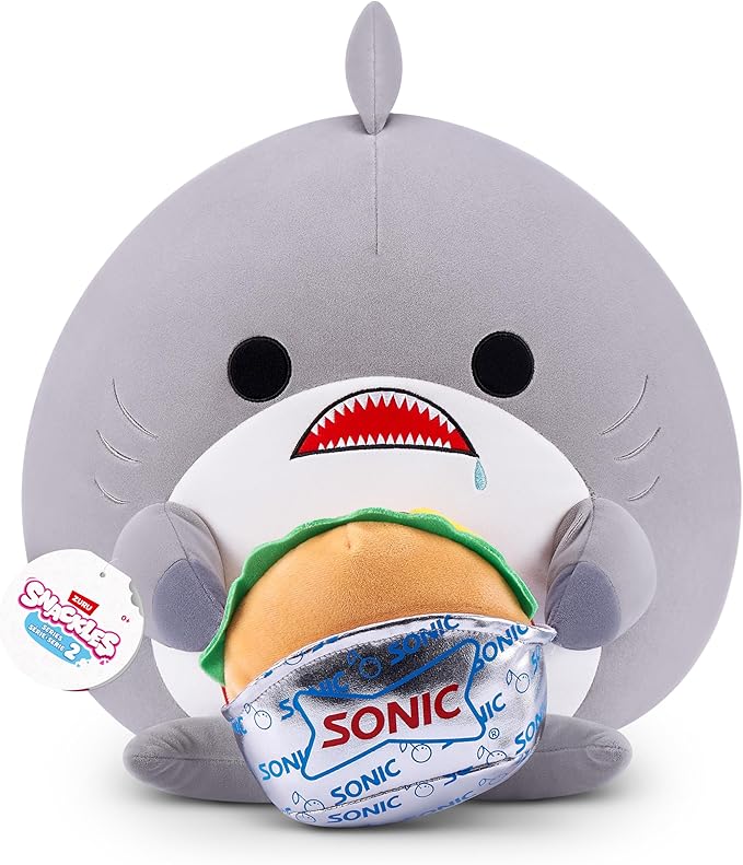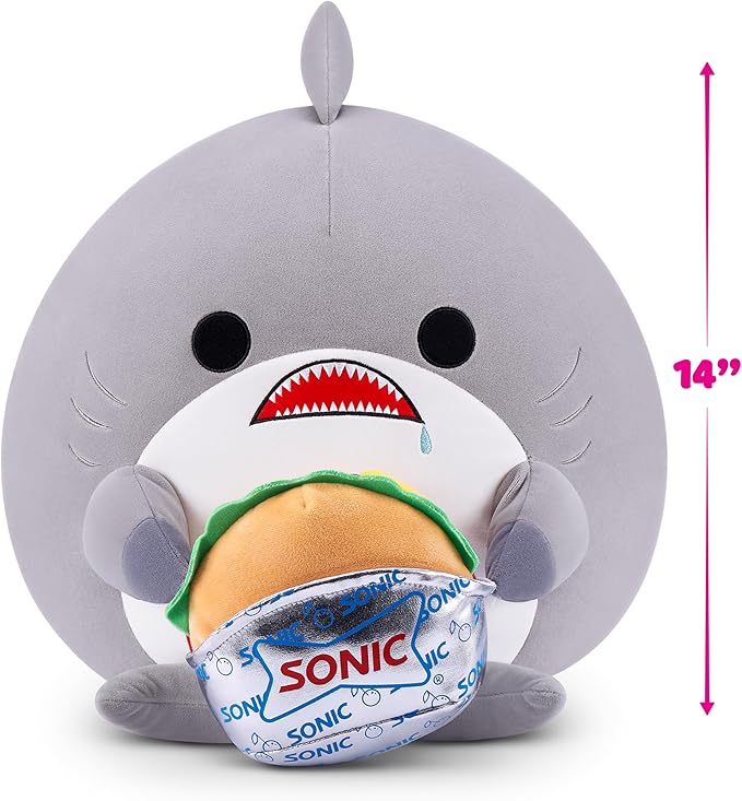 Snackles Series 2 14-inch by ZURU Cuddly Squishy Comfort 14-inch Plush with Licensed Snack Brand Accessory (Shark&Sonic Burger)