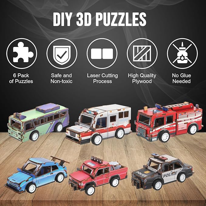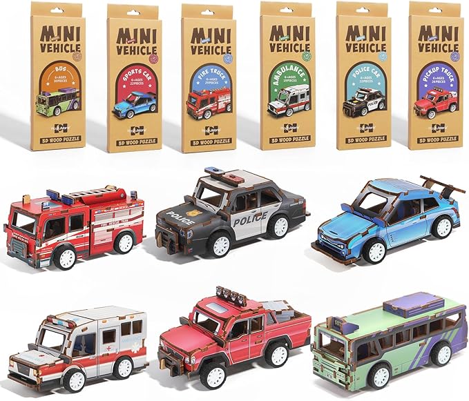 About This STEM Learning Fun: This 6 pack STEM kit features six 3D wooden puzzle cars: police car, ambulance, fire... Read more