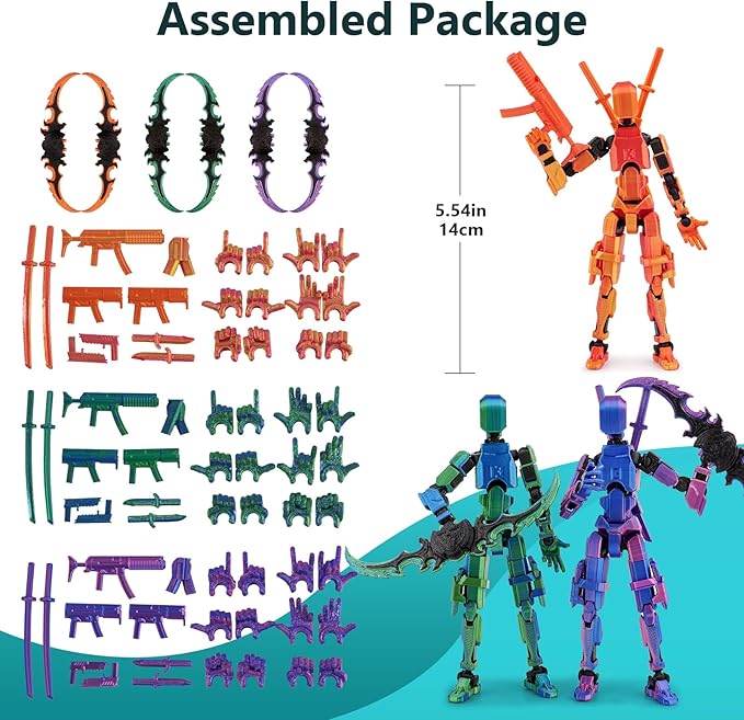 Pre-Assembly 3Pack 3D Printed 5.54'' Stick 13 Action Figure, Multi-Jointed Luck13, Articulated T13 Desktop Decoration, Abundant Accessories, Best Birthday Festival Gift
