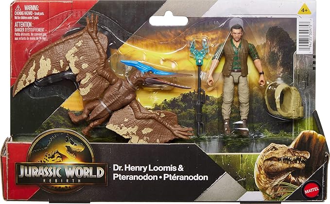 Mattel Jurassic World Rebirth Human & Dinosaur Figure Pack, Dr Henry Loomis & Pteranodon, Movie Accurate 3.75 Inch Scale, Posable Collectible