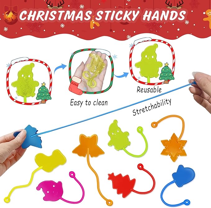 Christmas Sticky Hands Bulk 42PCS Christmas Party Favors for Kids Stocking Stuffers for Kids Stretchy Sticky Hand Toy Goodie Bag Stuffers Fillers Toys Classroom Prizes Carnival Birthday Party Supplies