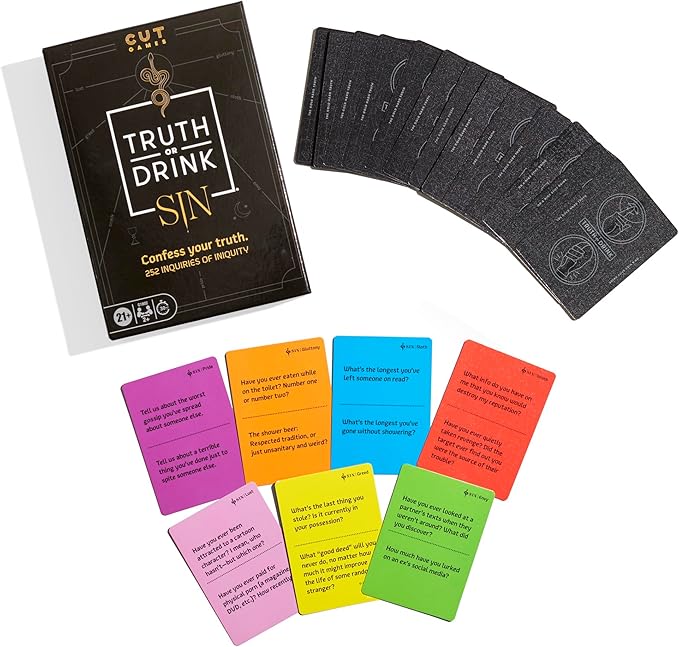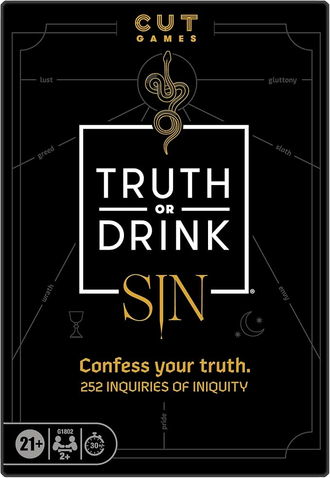 Truth or Drink: Sin Edition Adult Party Game by Cut | 250+ Questions Inspired by 7 Deadly Sins | Ages 21+ | 2+ Players | 30 Mins. | Stand-Alone or Expansion