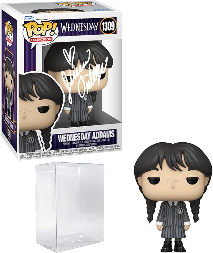 Jenna Ortega Wednesday Addams #1309 Facsimile Signed Reprint Laser Autographed Funko POP! TV Addams Family Figurine with Protector Case
