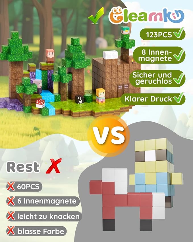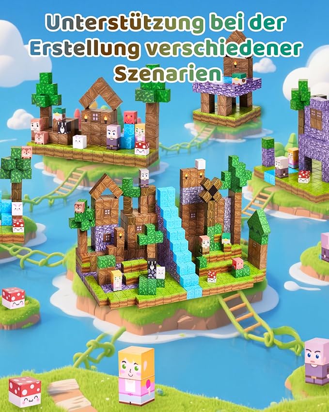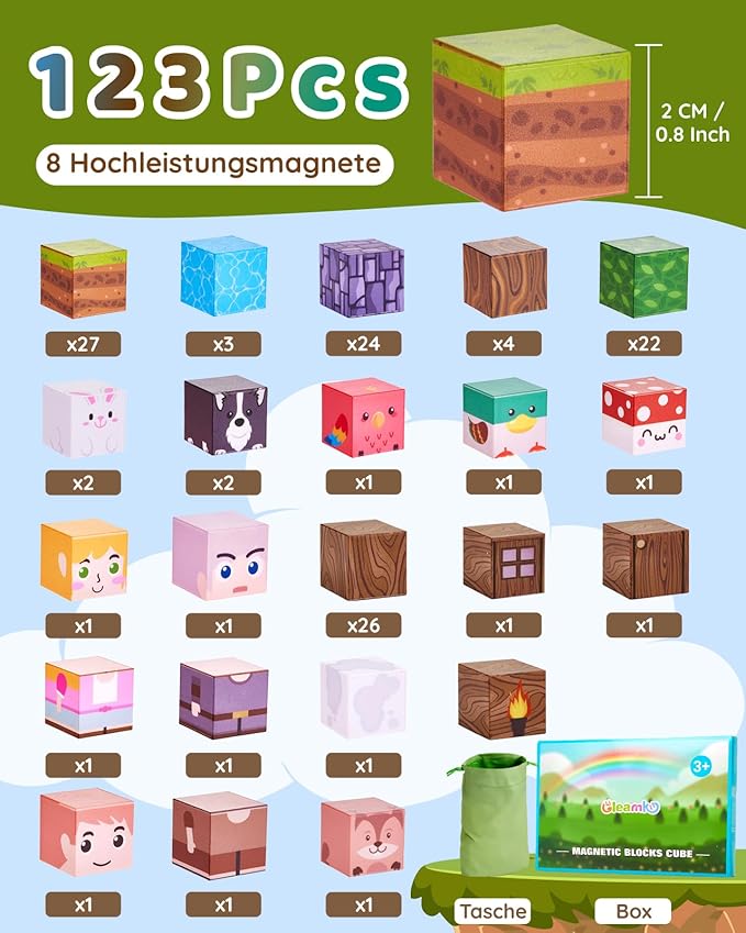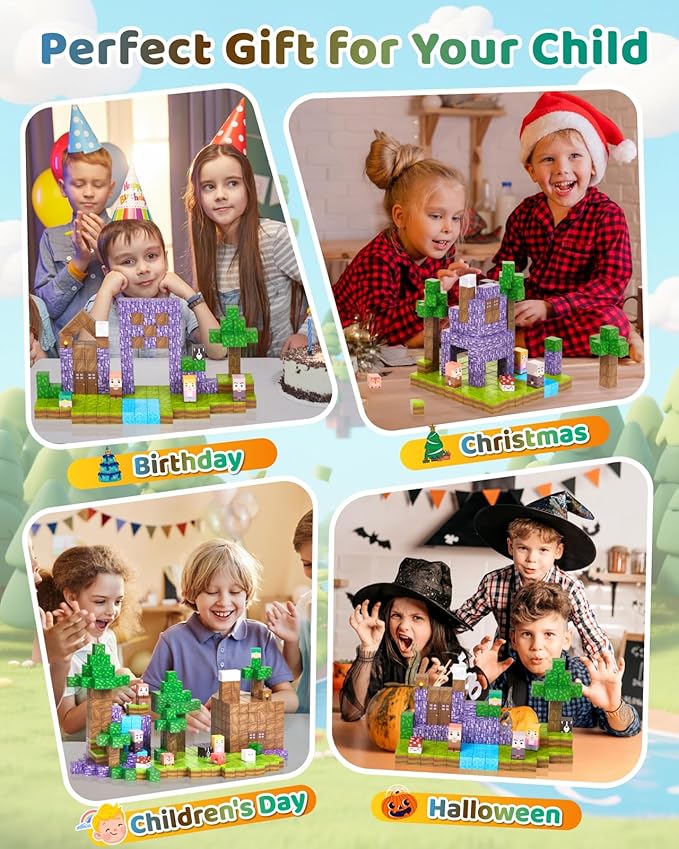 123PCS Magnetic Blocks - Forest Castle Theme Magnetic Blocks Building Toys, Toddler Magnet Toys STEM Building Game Sensory Gift for Kids Ages 3 4 5 6 7 8 9+ Boys Girls Birthday Gifts