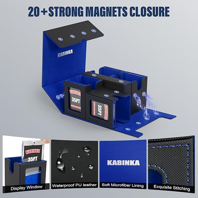 Card Deck Box for MTG with Commander Display, 5 in 1 Card Storage Box Fits 400+ Double-sleeved Cards, Removable Deck Case for TCG/Sports Cards with Dice Tray, 4 Magnetic Card Holders (Black Blue)