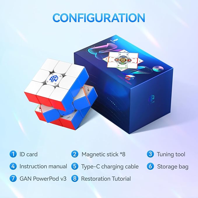 GAN 12 ui Maglev, Smart Speed Cube 3x3 with GAN PowerPod, Intelligent Magnetic Speedcube via Bluetooth Connected for Online Games/AI Training Puzzle Toys for Kids and Adults