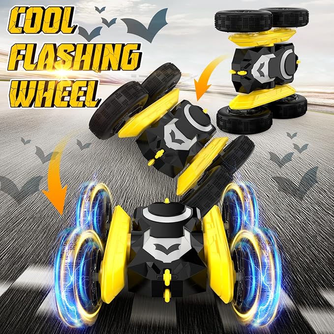 NQD Bat Remote Control Car- Double Sided 360°Rotate RC Stunt Car with Wheel Lights, 4WD Off-Road RC Cars 2.4Ghz Indoor/Outdoor Rechargeable Toy Car for Boys Age 4-7 8-12 Birthday Xmas Gift