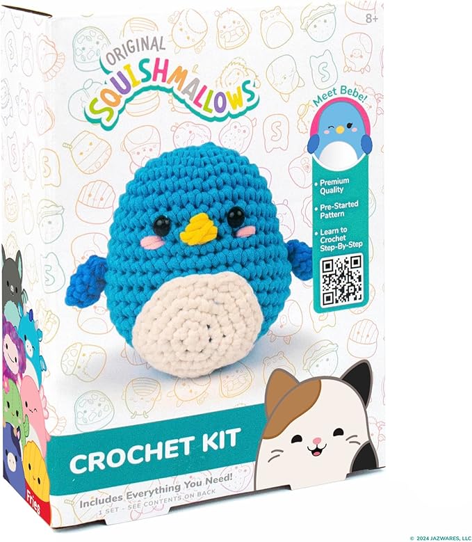 Original Squishmallows Bebe the Bluebird Crochet Kit, Includes Yarn, Crochet Hook, Starter Hooks, Step-By-Step Tutorials, Exclusive Crochet Kit For Beginners, DIY Craft, Crochet Kits, Great Teen Gifts