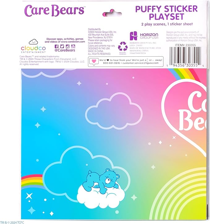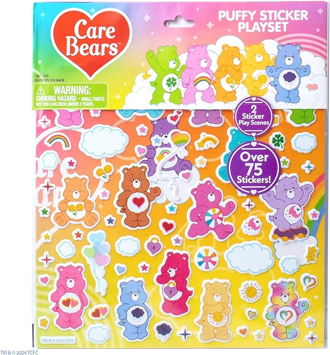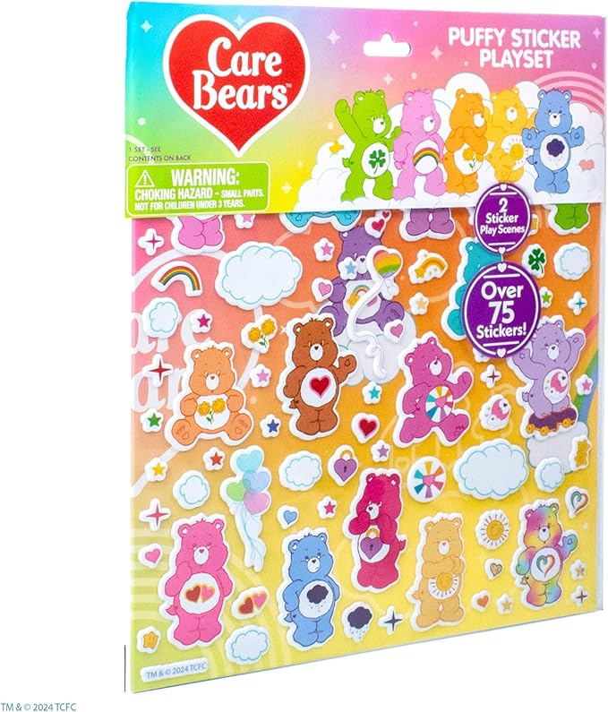 Care Bears Puffy Sticker Playset - Over 75 Reusable Stickers & 2 Play Scenes, Fun Activities, Travel Toys for Kids Ages 4-8