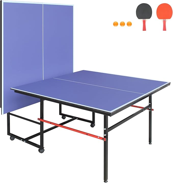 Table Tennis Table 4.5 FT / 6 FT / 8 FT / 9 FT Foldable Portable Ping Pong Table with 2 Table Tennis Paddles 3 Balls and Net for Indoor Outdoor Games