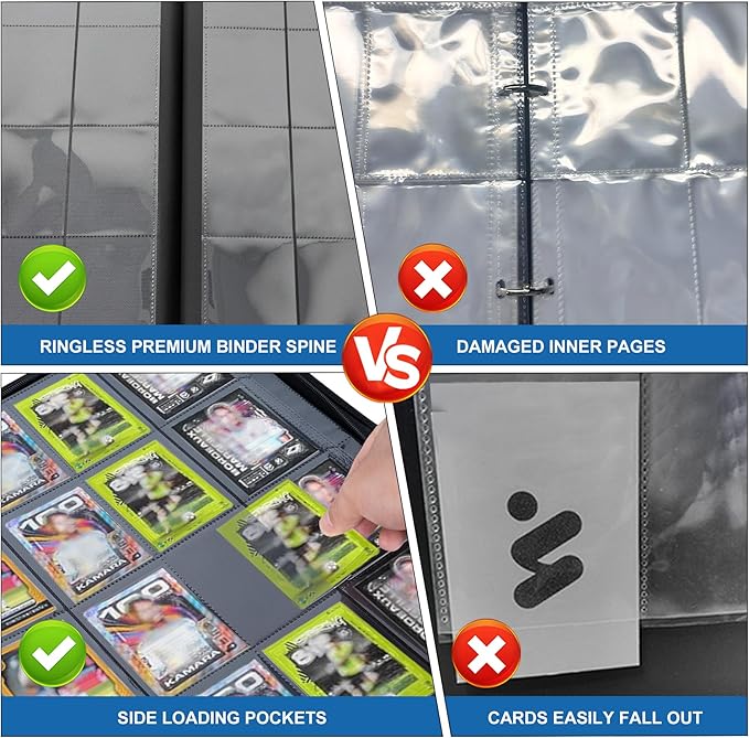 Trading Card Binder with16 Pocket 32 Pages up to 1024 Soccer TCG MTG YGO Trading Cards Binder,Waterproof Ringless Side Loading Trading Card Album for Soccer Cards 2024-2025