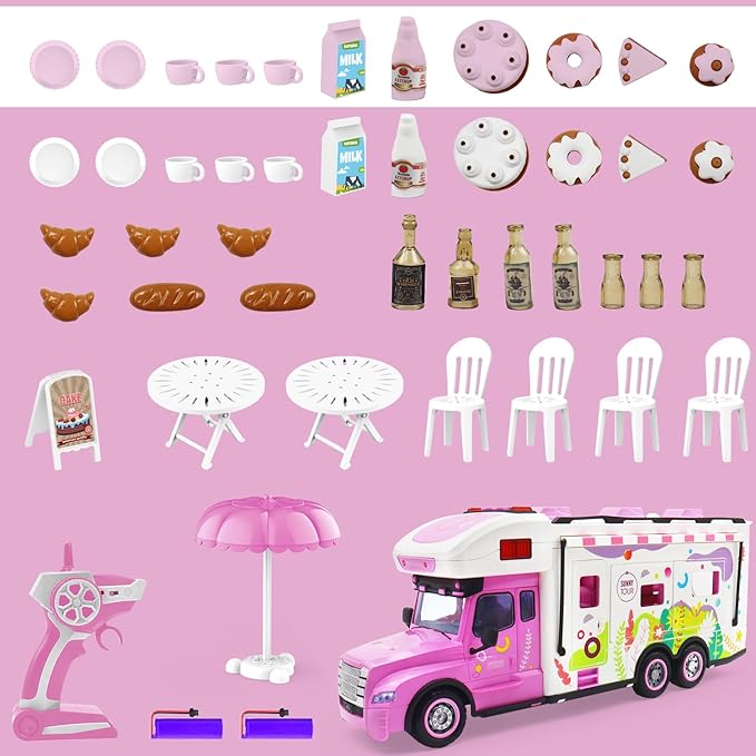 Remote Control Camper Toys, RC Truck for Boys Pull Back Model Car Doors & Awning Open Light Sound, RC Food Car Age 3 4 5 6 7 8 Kids Toddlers Birthday Gifts