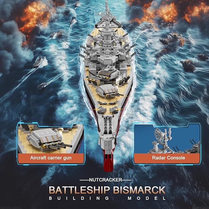 NUTCRACKER Battleship Bismarck Building Set for Adult, Large MOC Military World Missouri Battle Ship Model, Display Battleship Toy Building Set, Christmas Birthday Gift for Men Teens Boy (2228 Pieces)