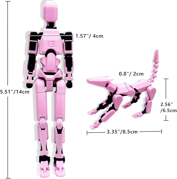 T13 Action Figures Set (Assembly Completed) Dummy 13 Titan 13 Robot Action Figure 3D Printed Robo Multi-Jointed Movable Action Figure Toy with Full Articulation (Pink Black Figure + Dog)