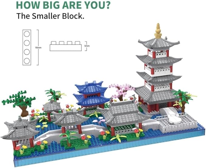 Architecture Chinese Style of Suzhou Garden,Hangzhou's West Lake,Build Iconic Asian Landscape,950 PCS mini Bricks,Featuring Pagoda, Stone Bridge,Asian Style Micro Blocks for Adults and Teens