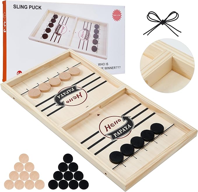 Fast Sling Puck Game - Test Your Speed and Accuracy with This Fast-Paced Wooden Air Hockey Desktop Battle Board Game - Guaranteed Fun Gifts for Family Night or Friends Party