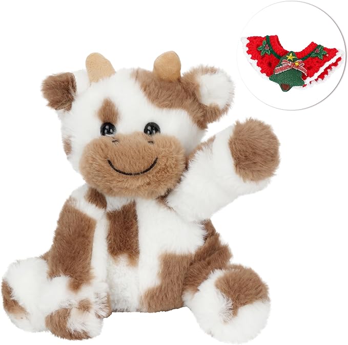Hopearl Adorable Christmas Plush Cow Toy Floppy Dairy Cattle Soft Stuffed Animal Cute Xmas Gifts for Boys Girls Kids Toddlers, Light Brown, 9''