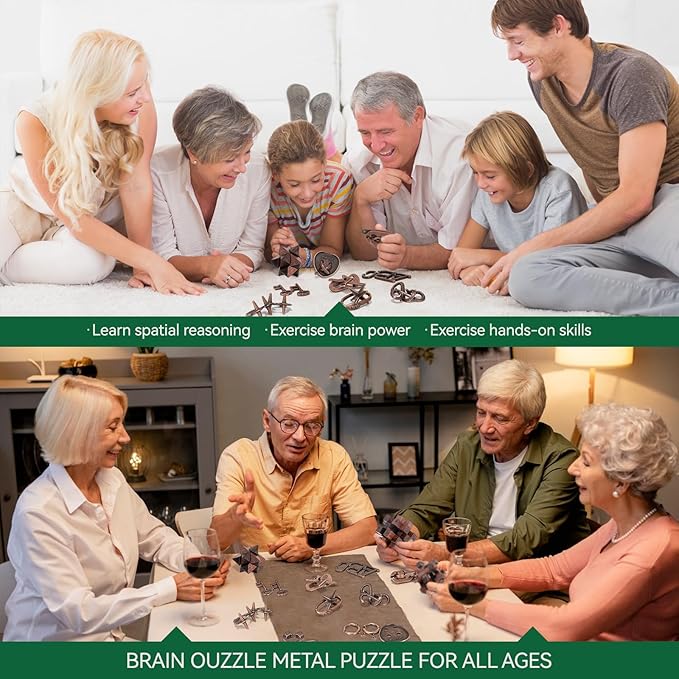 13 Pcs Brain Teaser Puzzles for Adults - Metal Puzzles 3D Puzzle Game Toys for Adults Teens - Wooden Unlock Interlocking Puzzle Adult IQ Education Smart Toys