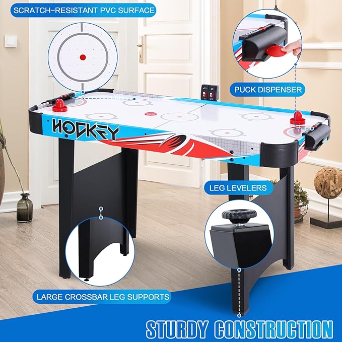 Foldable Air Hockey Table, 48" Indoor Air Hockey Arcade Table Gaming Set with 2 Pucks, 2 Pushers, Electronic Score Systems for Adults and Kids, Home Game Room, Family Recreation
