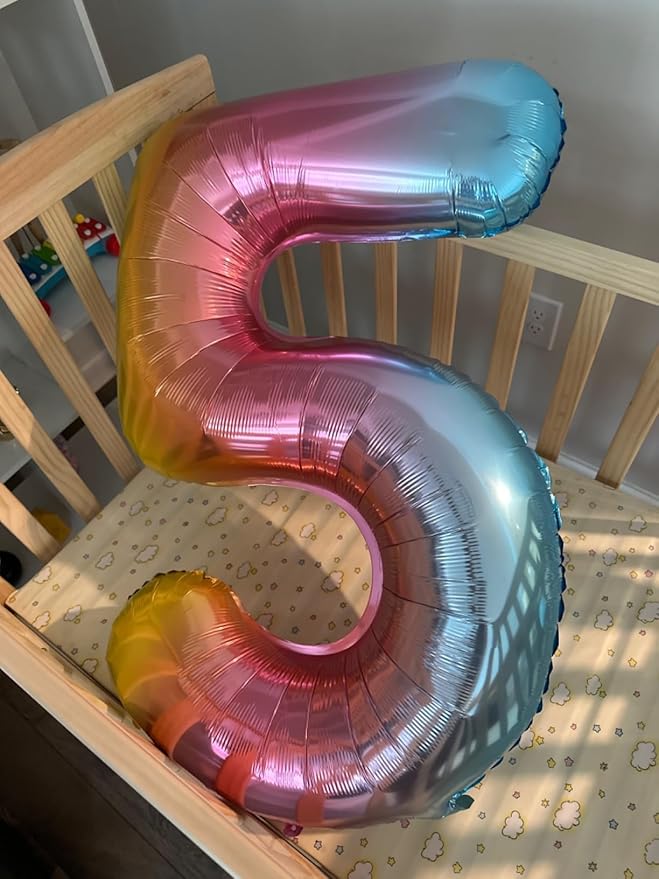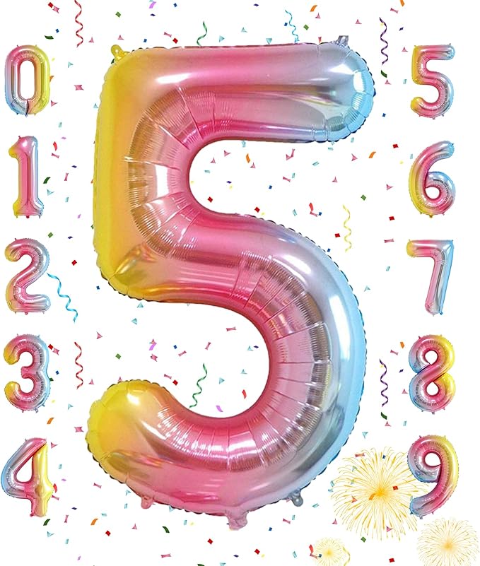 Smlpuame 40 Inch Number Balloons 0-9 Rainbow Gradient Large 5 Balloons, Digital Balloons for Party Celebration Decorations, Helium Foil Number Balloons for Wedding Anniversary