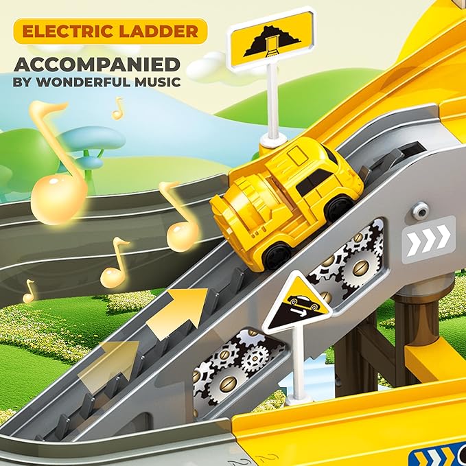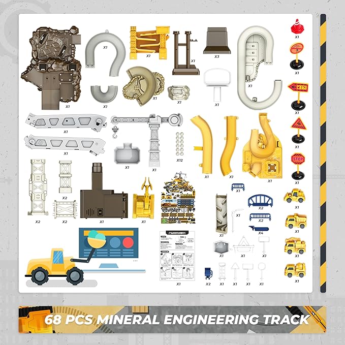 Toys for 3 Year Old Boys - SMIESSKIDDO 68 PCS STEM Construction Race Track Set with Music & Mining Scenes | Montessori Learning Gift for Toddlers Ages 3-6, Durable & Easy Build Car Tracks