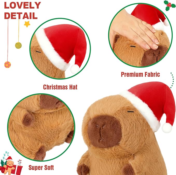 Ditucu Cute Christmas Capybara Plush with Santa Hat Soft Capibara Stuffed Animals Plushies Toys Xmas Gifts for Kids Brown 9 inch