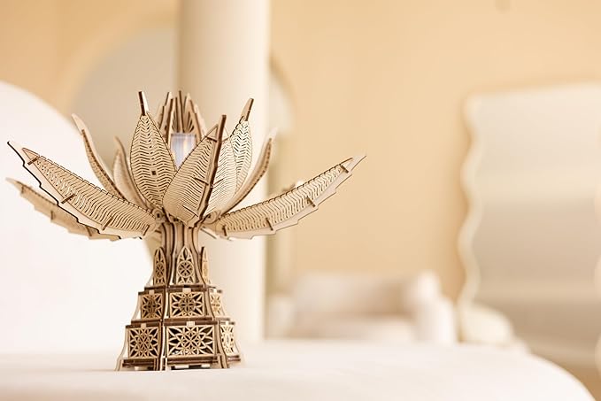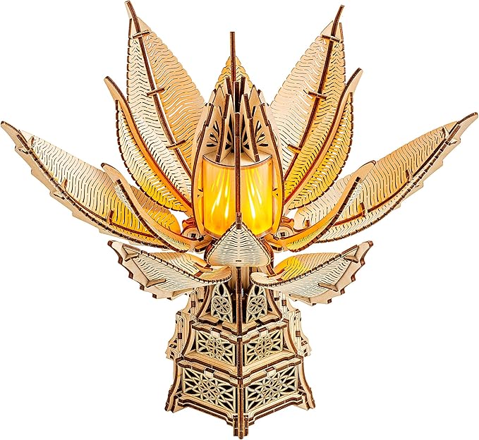 Wood Trick Fiery Bloom Luminous LED 3D Wooden Puzzles for Adults to Build - Interactive Mechanical Movement - Engineering DIY Project Mechanical 3D Puzzle Model Kits for Adults