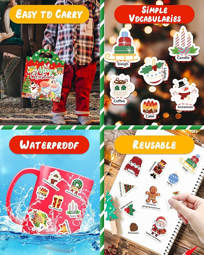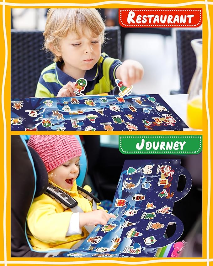 Benresive Reusable Sticker Books for Kids 2-4, Sticker Books for Toddlers 1-3 2-4, Toddler Travel Toys Activities Crafts Gifts - Christmas
