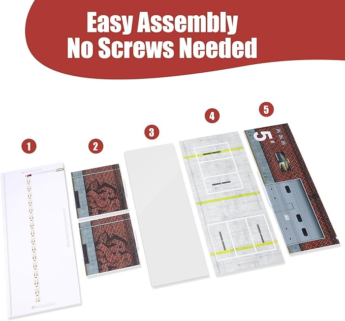 Display Case for Hot Wheels: Stackable Parking Garage for 1/64 Scale Matchbox Toy Car, FoamBoard Storage for Monster Trucks with LED Light and Acrylic Cover, Graffiti Wall