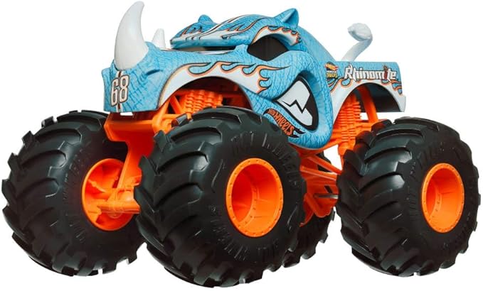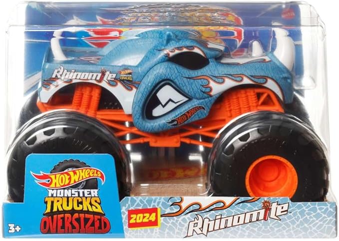 Hot Wheels Toy Monster Trucks Oversized Rhinomite 2024, 1:24 Scale Die-Cast, Blue, Orange, White