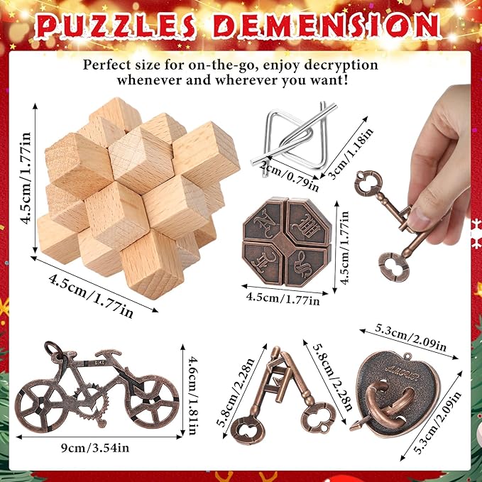 About This Brain Puzzle Set: you will 24 piece brain puzzles for adults, which includes 9 matel unlocking puzzles, 12... Read more