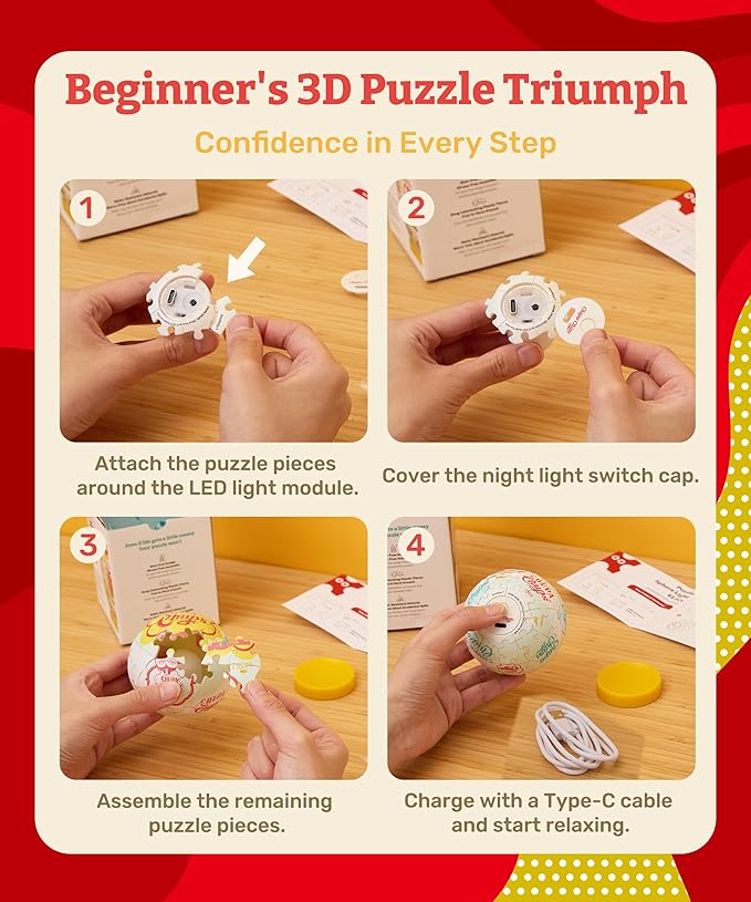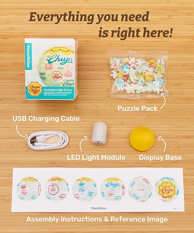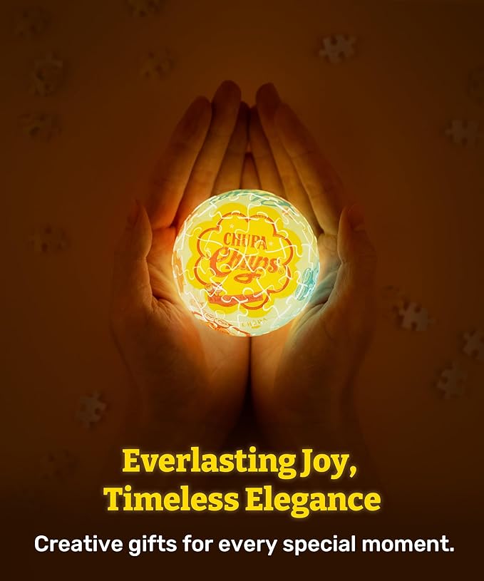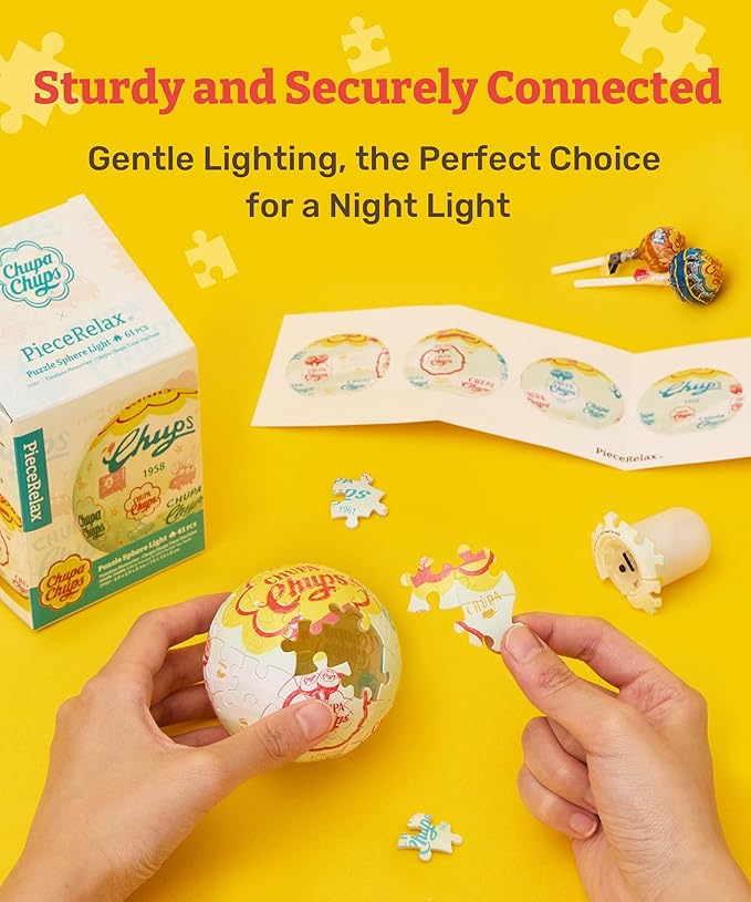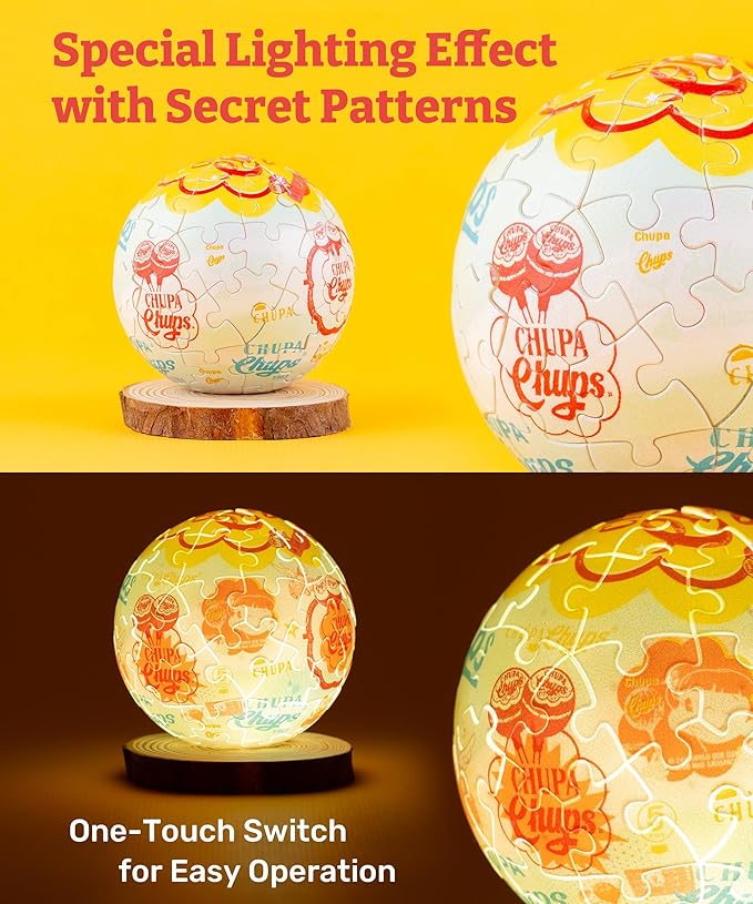 Chupa Chups X PieceRelax 3D Plastic Puzzle Sphere Light for Adults 60 Piece - Timeless Memories - Chupa Chups Time Machine Unique Gift & Home Décor with Curved Plastic Puzzle Pieces [J1151]