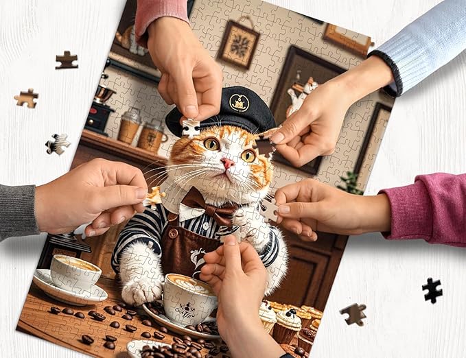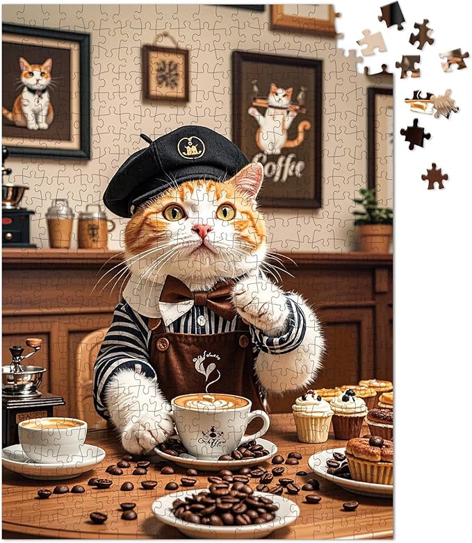 500 Pieces Jigsaw Puzzles for Adults and Teens and Kids Family Happy Gift Idea Cats Selfie (Cat Barista)