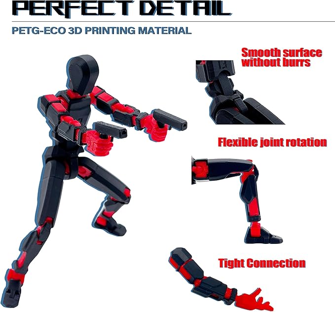 (Assembly Completed) T13 Action Figure Set, 3D Printed Toys Robo 13 Action Figure,Dummy 13 Titan 13 Action Figure (Black Red + Dog)