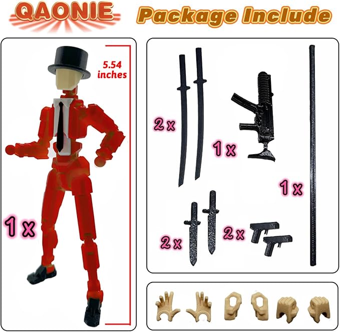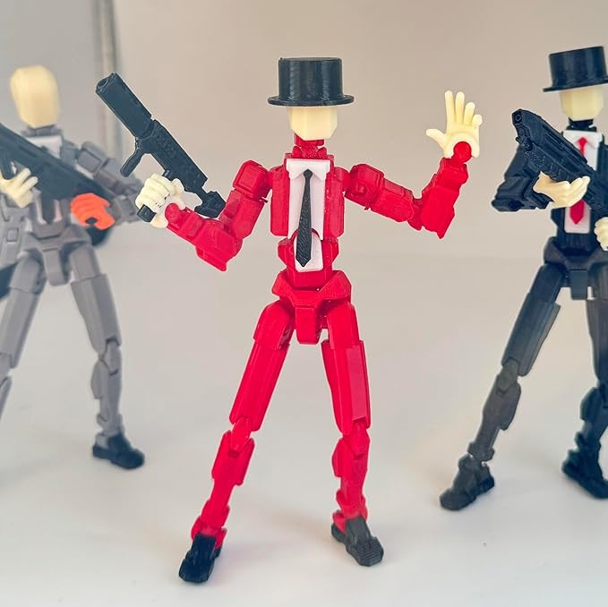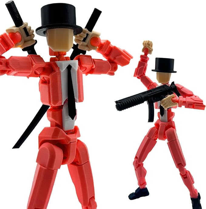 3D Printed 5.54-inch Multi-Jointed Action Figures Dummy13, Full Body Mechanical Movable Toy, Multiple Accessories, Hand Painted Figure, Desk Decoration, Creative Gifts (Y-Red Gentleman)