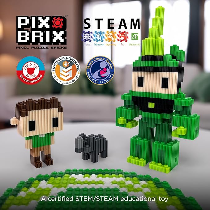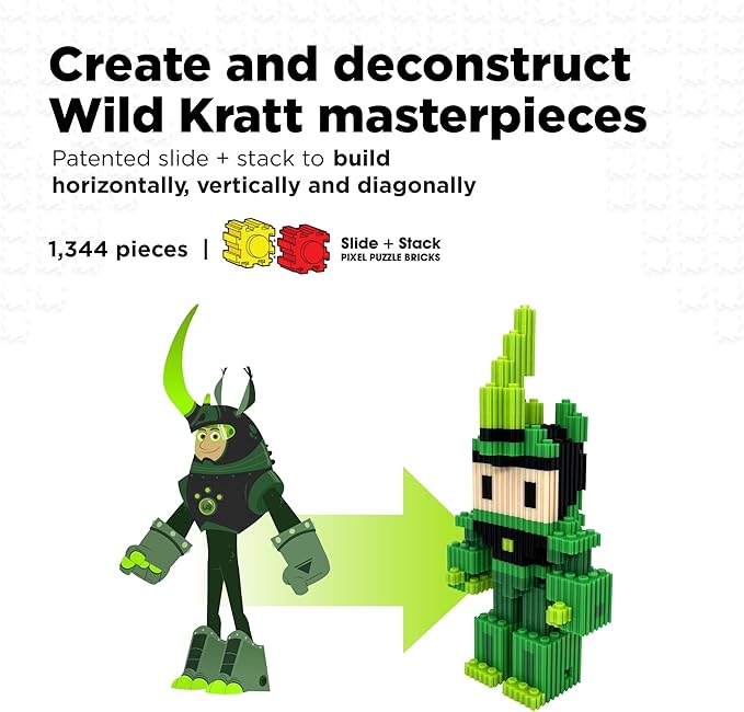 Pix Brix - Wild Kratts Toys Pixel Art Kit - Emperor Penguin, 1482 Pieces - Patented Slide + Stack Pixel Puzzle Building Bricks, Build & Collect Wild Kratts Animals - Stem Toys, Ages 6 Plus