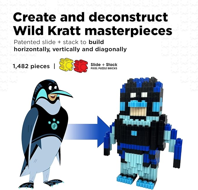 Pix Brix - Wild Kratts Toys Pixel Art Kit - Rhinoceros, 1344 Pieces - Patented Slide + Stack Pixel Puzzle Building Bricks, Build & Collect Wild Kratts Animals - Stem Toys, Ages 6 Plus