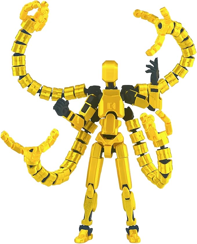 Assembly Completed T13 Action Figure,T13 Action Figure Multi-Jointed Movable,Ultimate Desktop Decor for Lovers t-13 Movability 3D Printed Toys (Yellow, 5.5in)