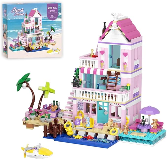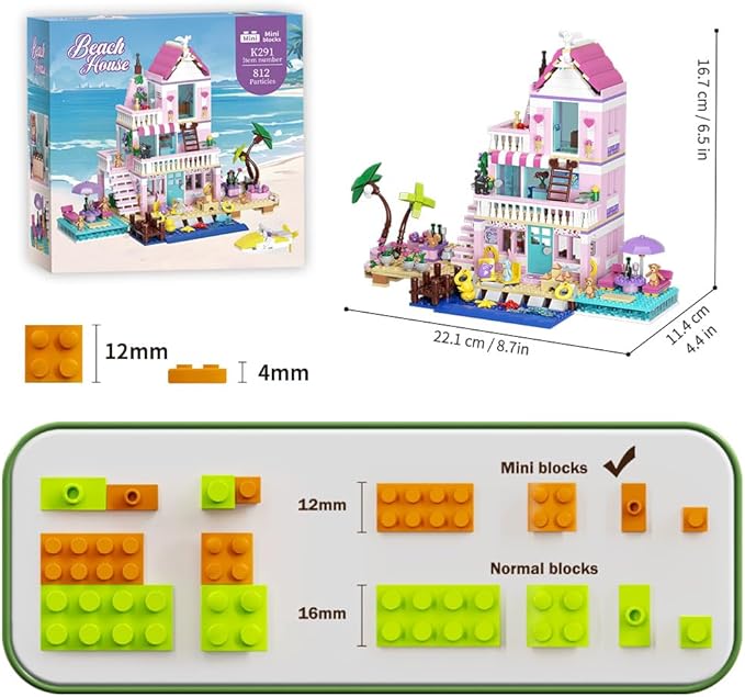 MindBox Girls Seaside Villa Building Blocks,812pcs Beach House Building Toys for Kids Age 8+,Mini Brick