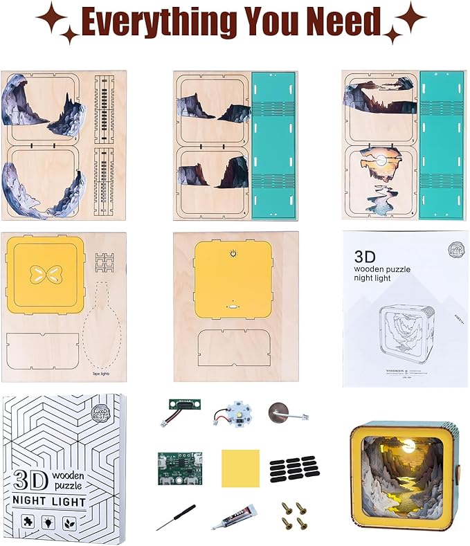 3D Puzzle Nightlight-DIY LED Light 3D Cave Wooden Puzzle-Art Lamp and Craft Kits for Kids and Adults-Birthday Gifts Toys-Home Desk Decor Family Game