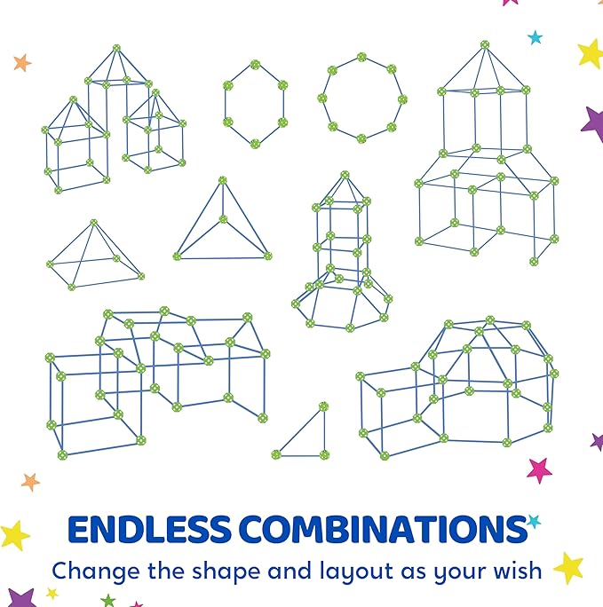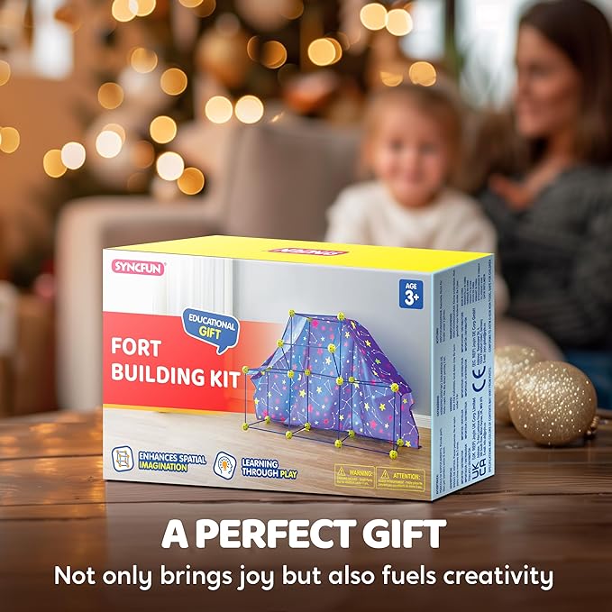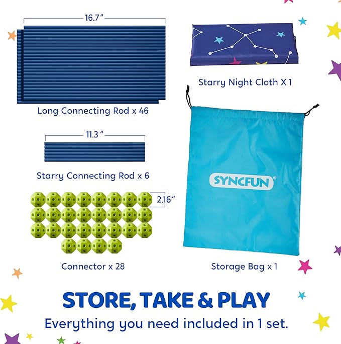 SYNCFUN Fort Building Kit for Kids, STEM Creative Construction Toy with Starry Night Cloth, Storage Bag for Indoor & Outdoors Activity, Educational Gift for Age 3 4 5 6 7 8 9 10 11 12 Boys and Girls