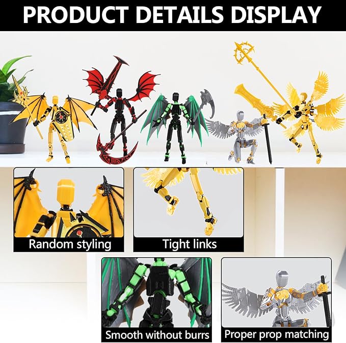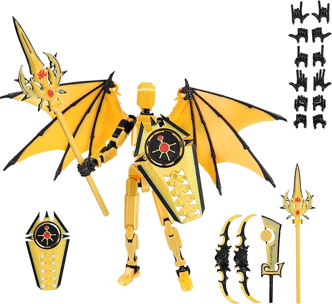 T13 Action Figure & Titan 13 Toys Yellow(3D Printed Action Figures Assembly Completed)(Multi-Jointed Movable)(Angel Designs Includes Various Accessories) Dummy 13 T 13 Figures Desk Decoration 5.5in