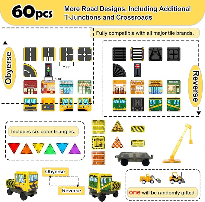 About This [Two-Themed Magnetic Tiles Set]: This versatile magnetic tiles set features three exciting themes—engineering vehicles, railroads, and dentist. Designed... Read more