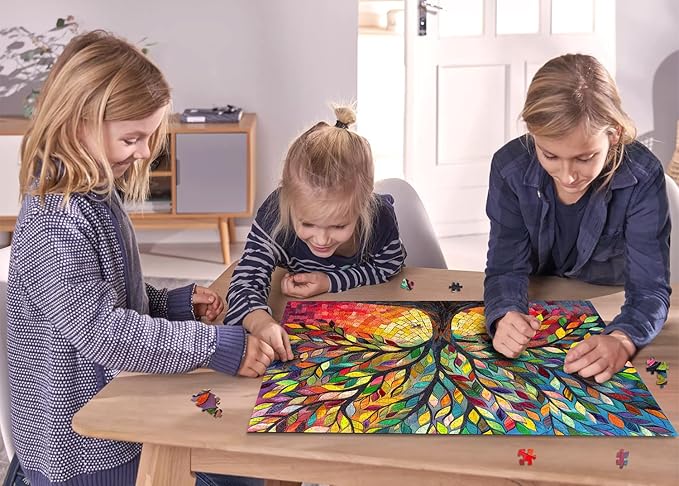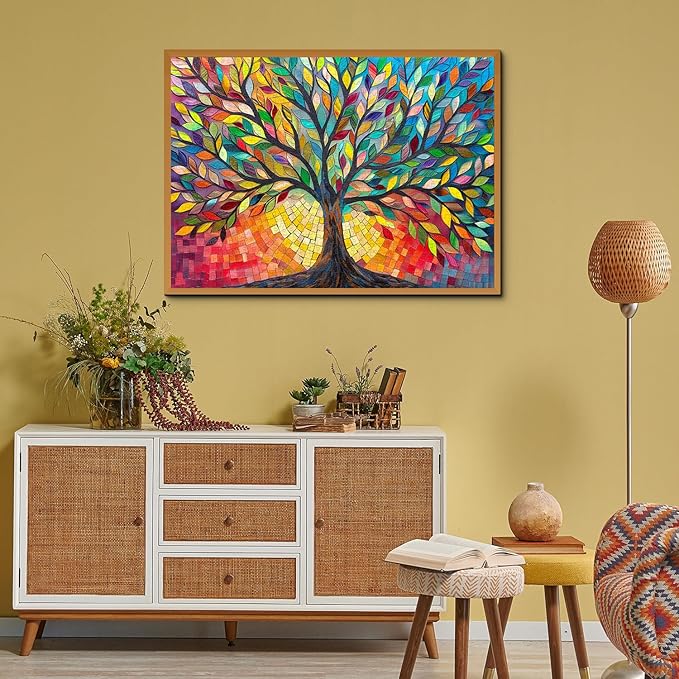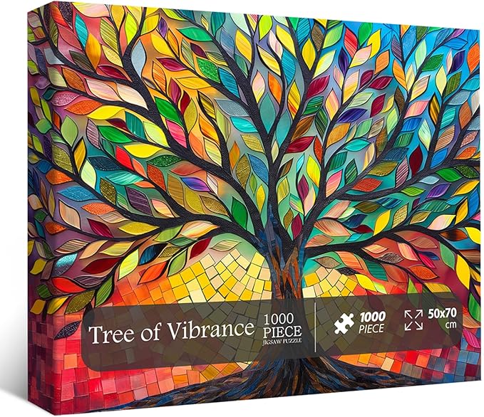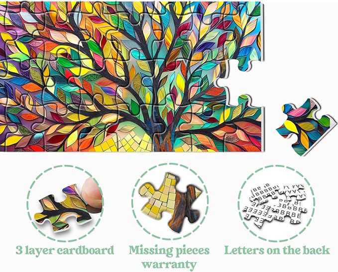 Stained Glass Tree of Life Puzzles for Adults 1000 Pieces, Impossible Challenging Hard Jigsaw Puzzles, Colorful Mosaic Tree of Life Puzzle as Plant Decor