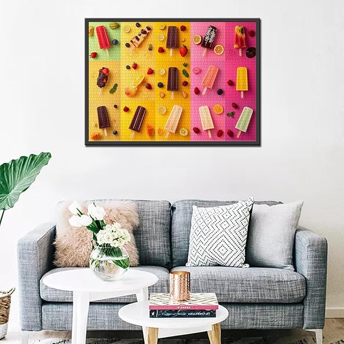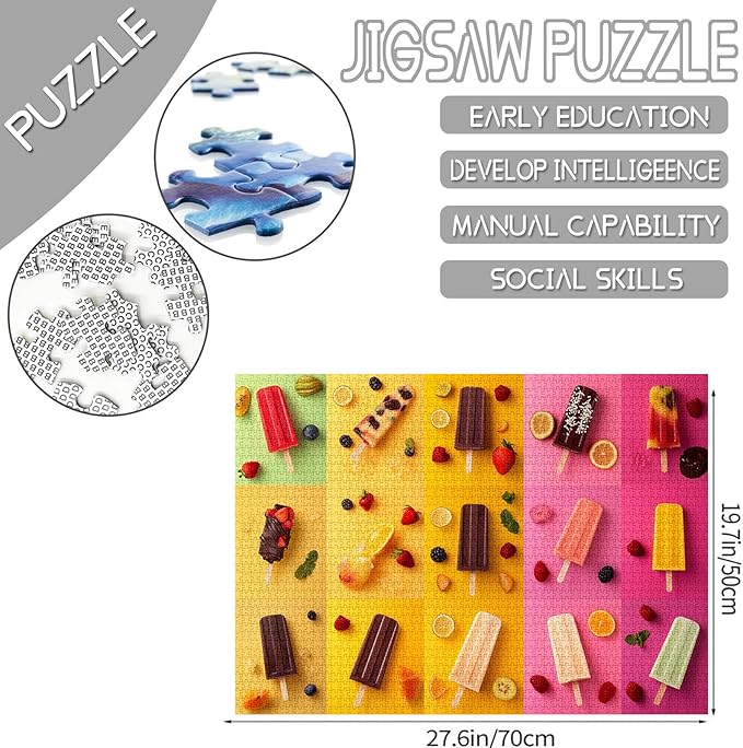 Various Types Shapes of Popsicles Jigsaw Puzzle,Cool Summer Popsicles 1000 Pieces Jigsaw Puzzles for Adults,27 x 20 Inches Puzzles ,HD Quality Colorful Puzzle Gift,Family Activity for Game Night