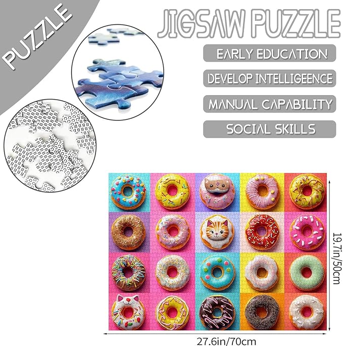 Different Shapes Colors Doughnuts Jigsaw Puzzle 1000 Pieces Puzzles for Adults, Colorful Playful Donut Jigsaw Puzzles for Challenging Family Activity Games DIY Puzzle for Home Decor - 20 x 27 Inches