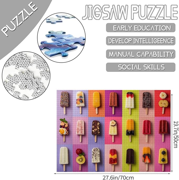 Various Types Shapes of Popsicles Jigsaw Puzzle,Cool Summer Popsicles 1000 Pieces Jigsaw Puzzles for Adults,27 x 20 Inches Puzzles ,HD Quality Colorful Puzzle Gift,Family Activity for Game Night