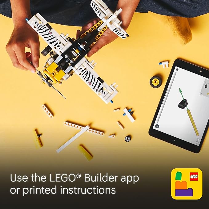 LEGO Technic Bush Plane Toy - Buildable Airplane Toy for Kids, Boys and Girls, Ages 8+ - Model Airplane Gift with Spinning Propeller, 4-Cylinder Piston Engine, and More - 42198