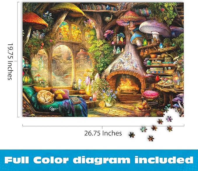 Buffalo Games Jigsaw Puzzles for Adults 1000 Pieces - Aimee Stewart - Merry Mushroom Cottage - Hard Adult Puzzle with Reference Poster, Fun, Unique & Challenging for All Abilities, Large 26.75 x 19.75